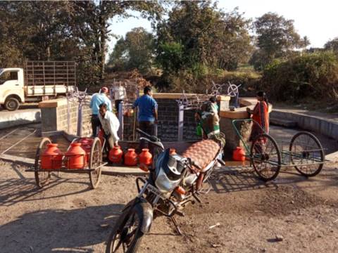 We identified this village where villagers and women have to carry buckets of water from a very limited souce of water body available in the villages. Conditions worsen from February to June.